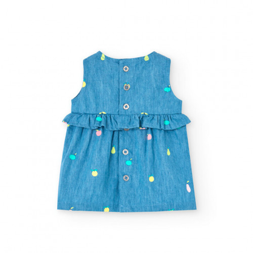 Boboli Дънкова рокля с принт Бебе момиче