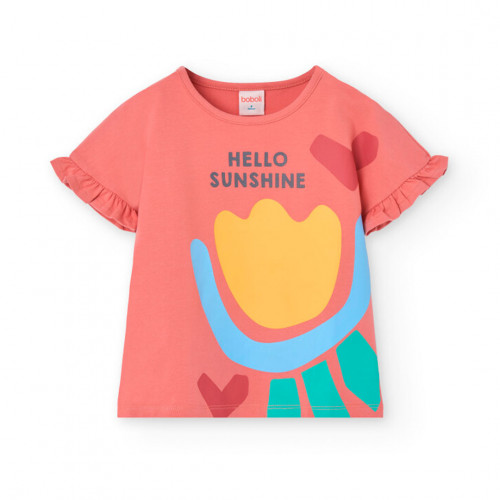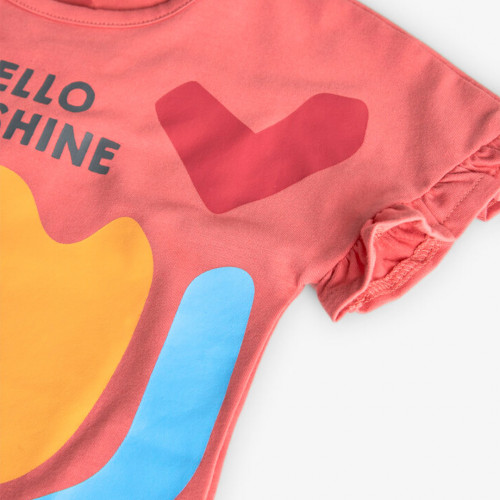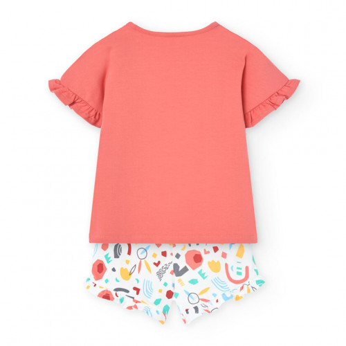 Boboli Розова памучна пижама с къс ръкав Момиче